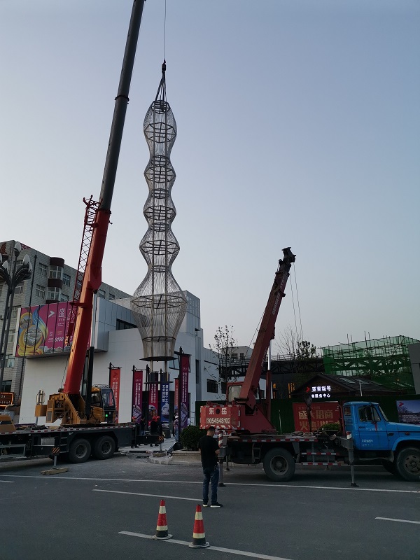 2021年5月,昌林雕塑景观公司承接烟台亚东文创园大型标识雕塑制作安装工程,雕塑由上海知名设计事务所设计,位于烟台工业博物馆门前广场,采用现代艺术语言以原工业标准件制作遗 迹为原型,设计四个一组群体雕塑。雕塑全部采用316不锈钢制作,不锈钢本色呈现。昌林雕塑以精工制作和严谨的管理为保障,雕塑顺利制作安装一次完成。不辜负建设单位的信任,全力实现“昌林雕塑”品牌的信誉和承诺。亚东文创园作为开发区的首个文创产业园区,建设单位投入巨大,打造一流建筑景观。上下瞩目,社会影响广泛,昌林参与,倍感自豪。