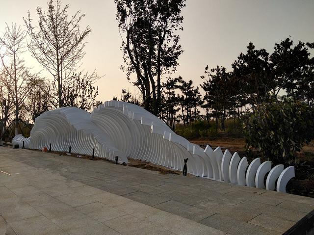 当前位置:首页>>雕塑工程>>烟台依云水岸 《海浪》不锈钢雕塑景观