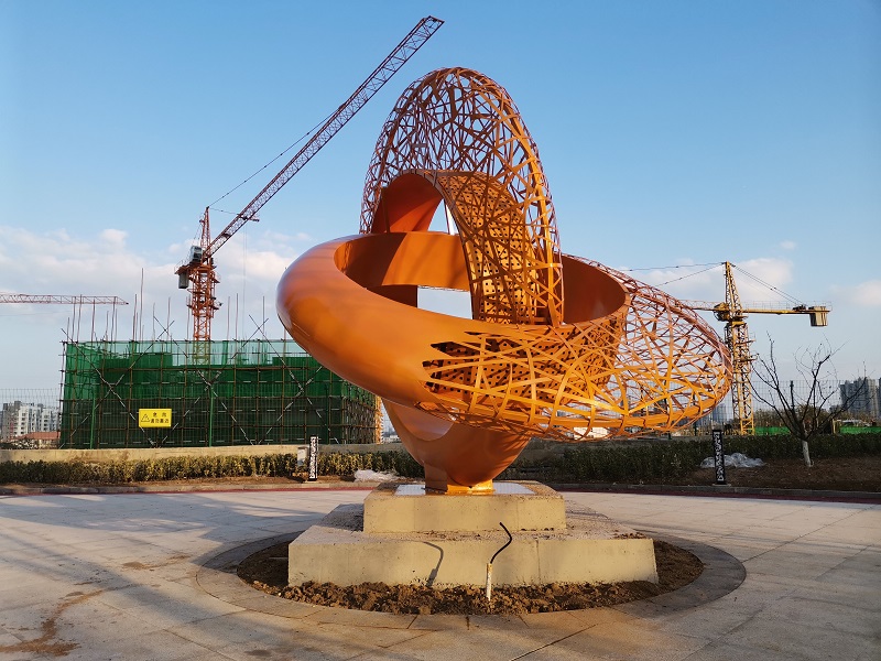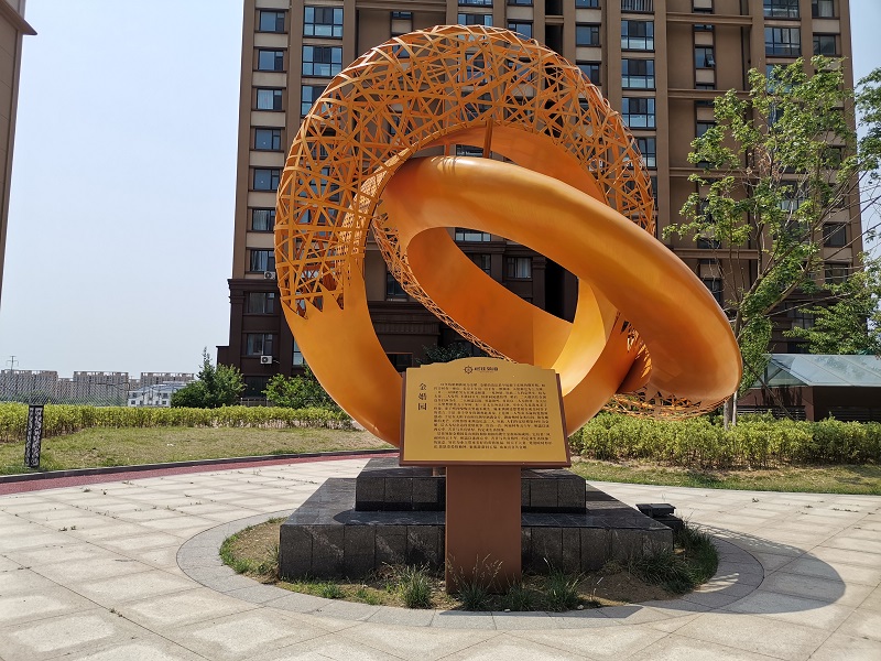 304不锈钢制作,雕塑高3.9米,宽5米。雕塑位于小区金婚园景区,寓意金婚纪念。昌林雕塑2019年11月制作安装。