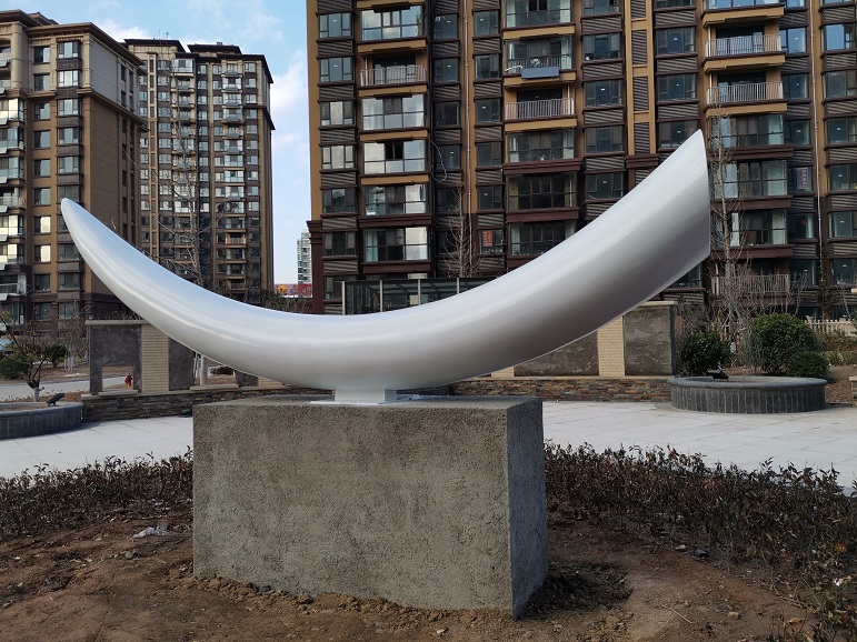 蓬莱居佳领海小区 象牙婚 景观园 象牙不锈钢雕塑 304不锈钢制作,长5米。昌林雕塑2019年11月制作安装
