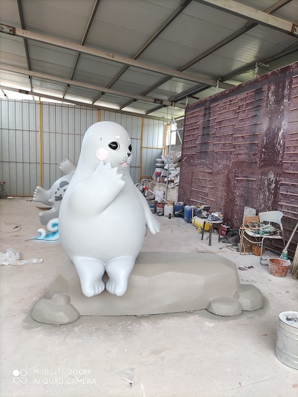 烟台蓬莱长岛形象大使斑海豹一组  玻璃钢雕塑  2021制作