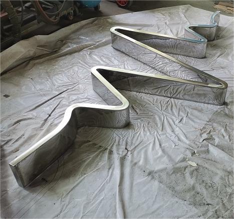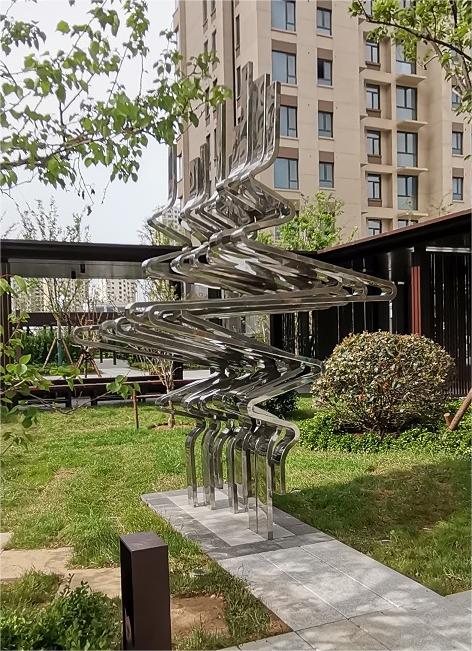 烟台开发区乐橙小区园林雕塑,镜面不锈钢抽象雕塑。材质2mm厚304不锈钢,2023年烟台昌林雕塑景观公司制作安装。